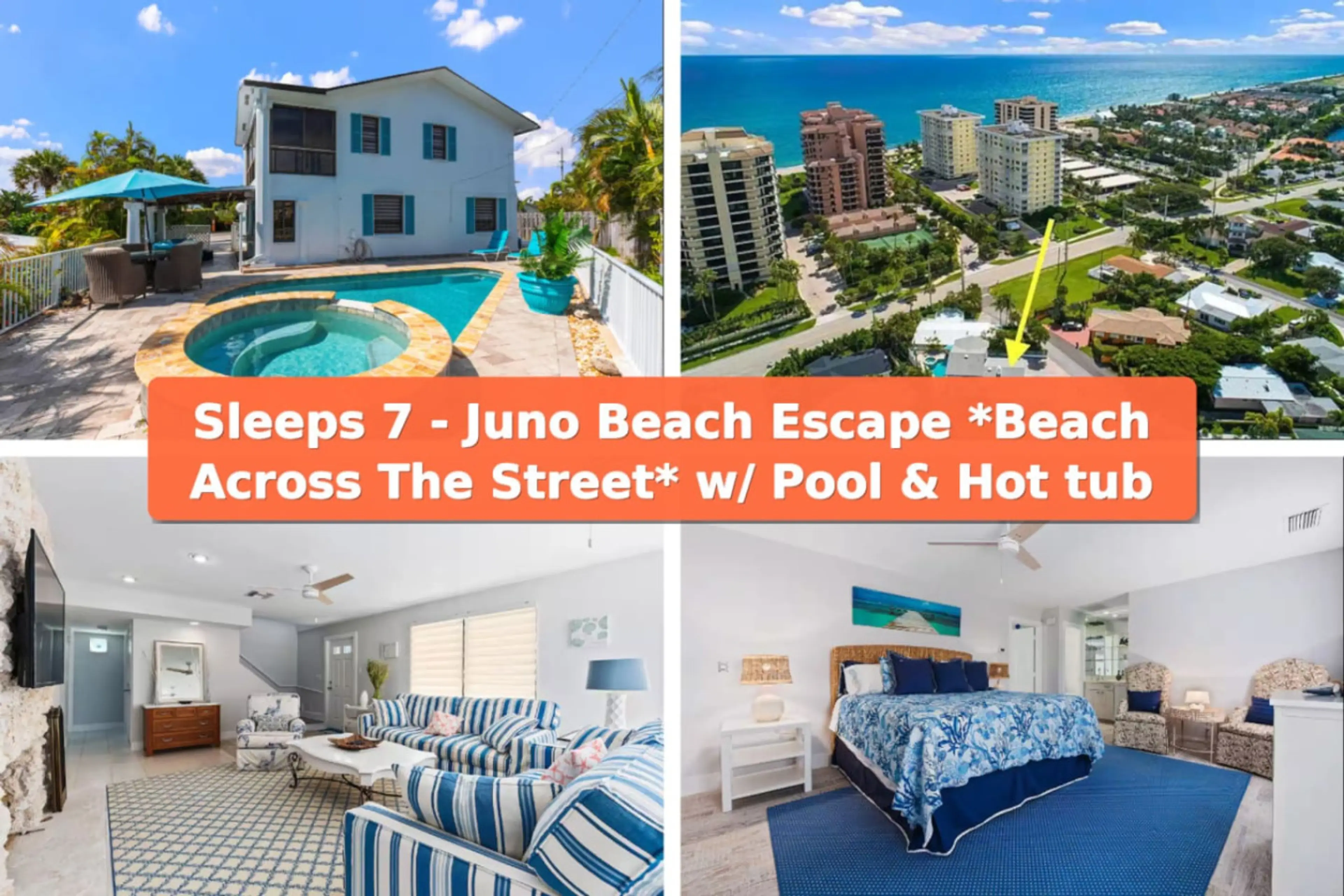 Relax and chill at this peaceful beachside getaway in the heart of Juno Beach, Florida. Located right across the street from the beach, this family-friendly retreat offers the perfect blend of comfort and convenience. Enjoy morning walks along the shore, charming local restaurants, and a laid-back c...